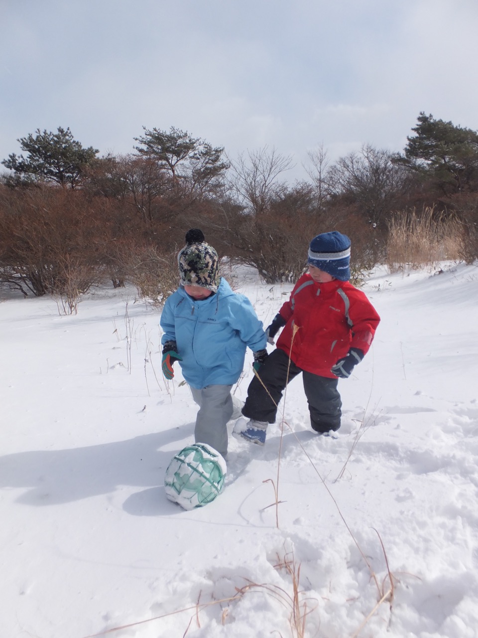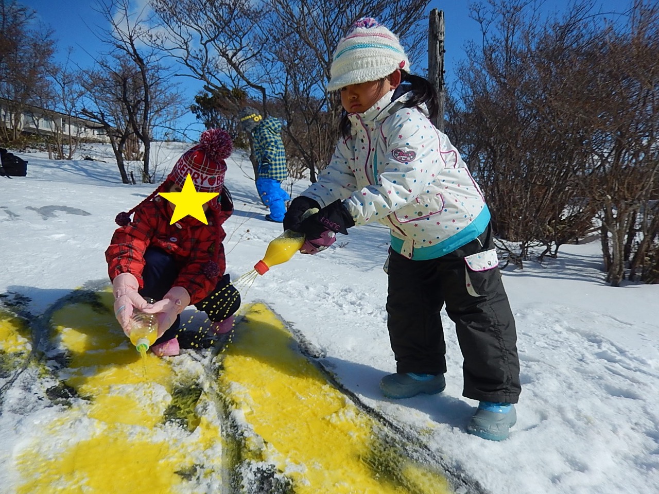 2泊3日で年中・年長児が出掛けてきます。かまくら作りやランタン作り、アイスクリーム作りやソリ滑りなどを行います。また、スノーシュー(かんじき)を履いて自然の中を散策したり、夜にはランタンにキャンドルを灯し、幻想的な世界に浸ったりと様々な活動を行っております。