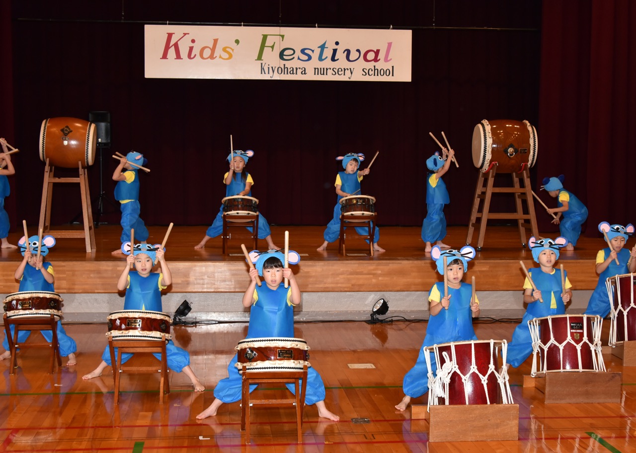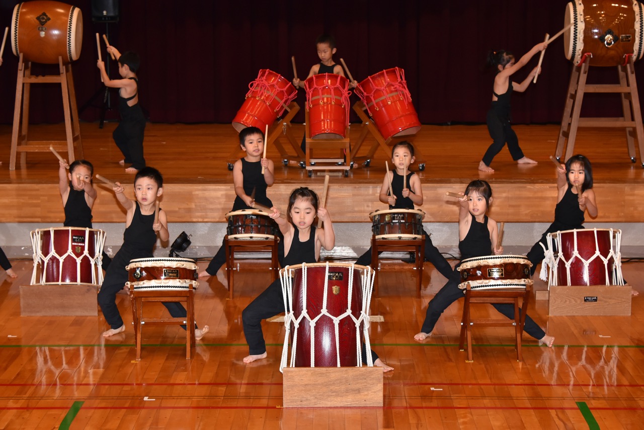 4歳から指導が始まり、運動会ではマーチング、発表会では日本太鼓の演奏を披露しています。
